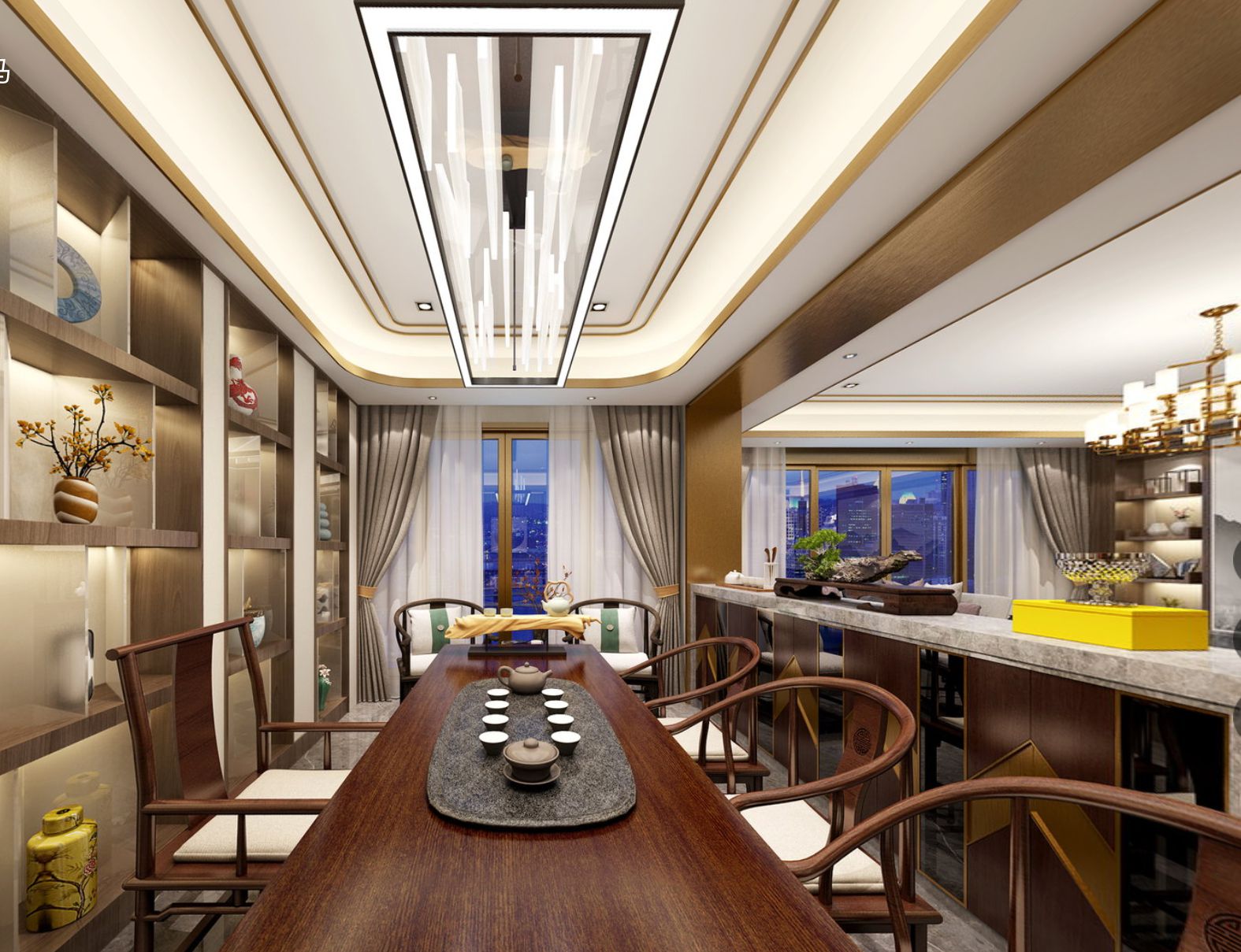 開放式吧臺,是品質生活的升級。歲月有聲,自成高華,濃淡相宜,四季相安。無論是與家人的溫馨早餐、與愛人的燭光晚餐或僅僅只是閑暇之余的一支雪茄,皆是享受。